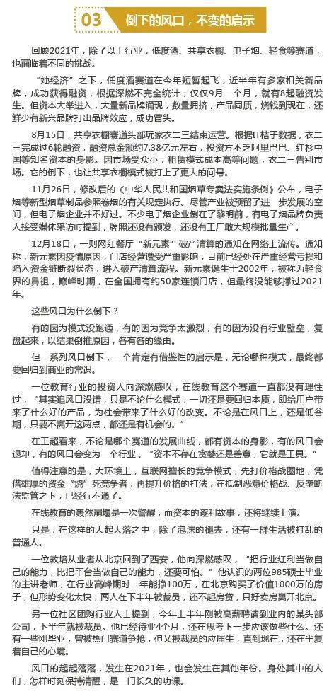 回顾2021年,除了以上行业,低度酒、共享衣橱、电子烟、轻食等赛道,也面临着不同的挑战。