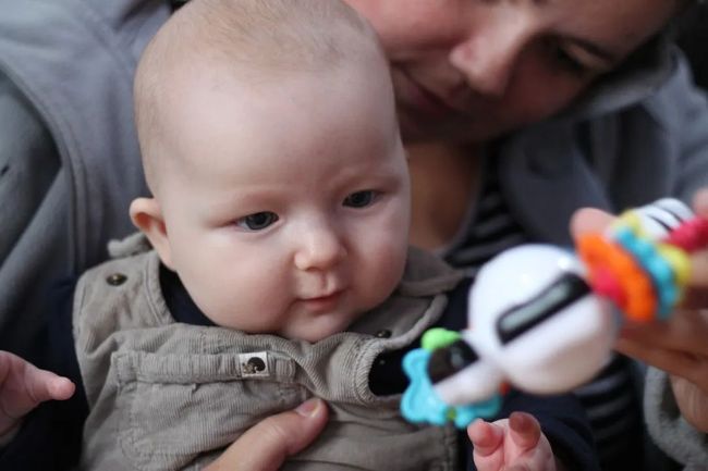 要逗引他抓、蹬和发声,注意孩子能否发出ma、na等的近似音,记录能发出的辅音及时间。