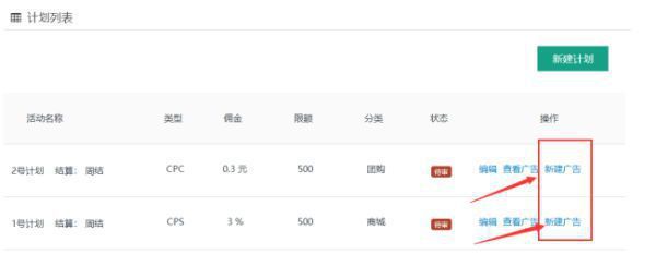 4,新建计划完成后 点击 广告管理--新建广告 并提交