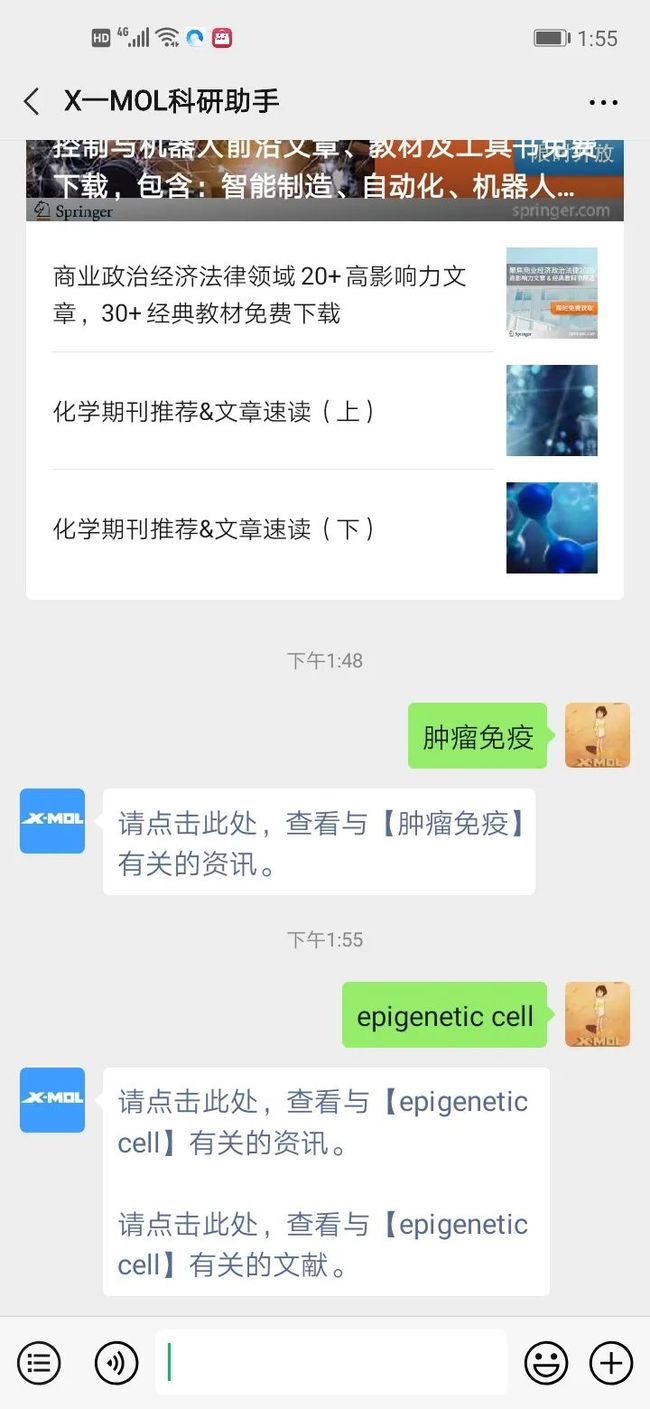 03通过X-MOL微信公众号对话框,随时随地查询