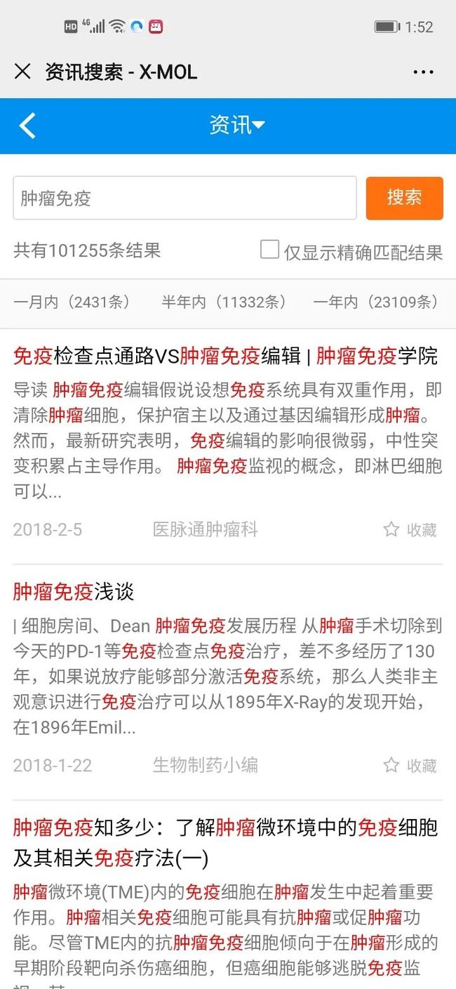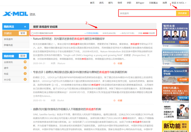 2).输入中文关键词:您将得到包含输入内容的中文资讯,这些资讯不仅包含X-MOL原创内容,还包含300+精选的优质公众号的相关内容,点击之后会直接到达该公众号的文章页面。