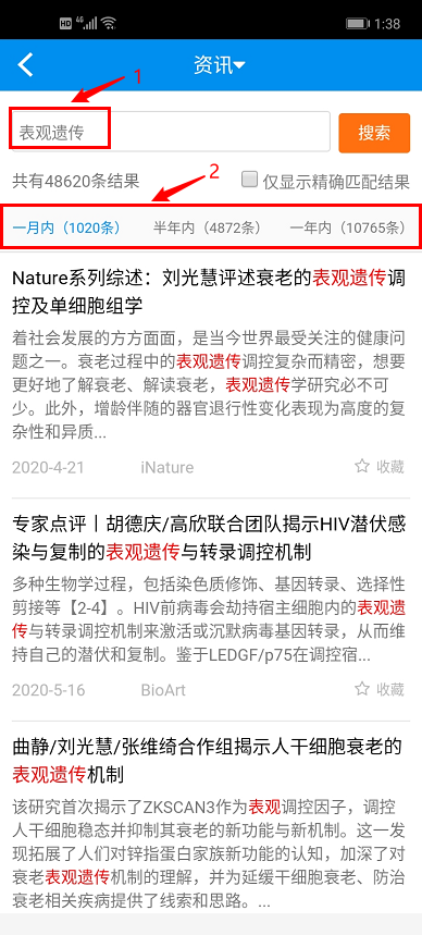在这里,您可以选择按最近一个月内、半年内和一年内这三个时间区间显示搜索结果;只显示精确匹配的结果。