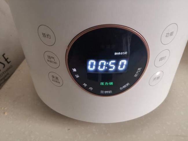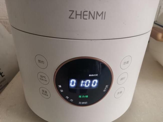 第六步:这款压力煲会自动排气,时间到了直接打开压力煲即成,不用再放气,解放双手更简单。这款臻米饭煲压力煲合一的电饭煲,弧形立体加热,6段控温,煮出的食物更美味更营养。这款电煲4L大容量,足够大家庭使用,熬粥,做汤,做菜,做饭都不在话下。还可以24小时预约,上班族特别适合。我们等待即可,如果早上和可以用预约的哦。