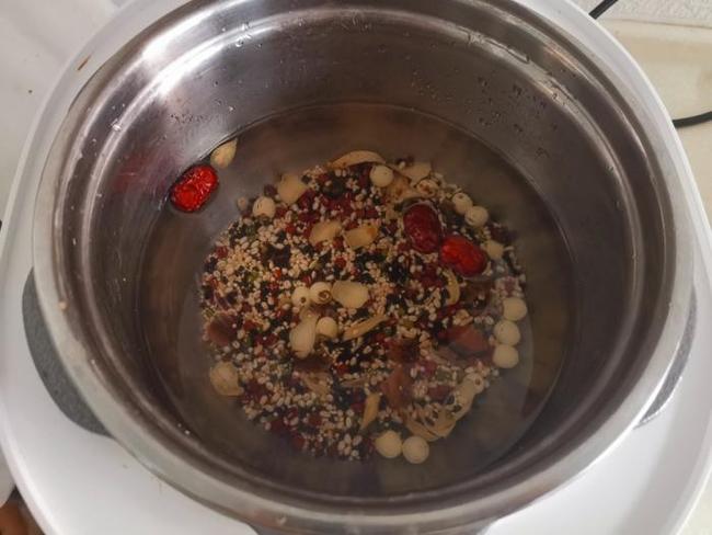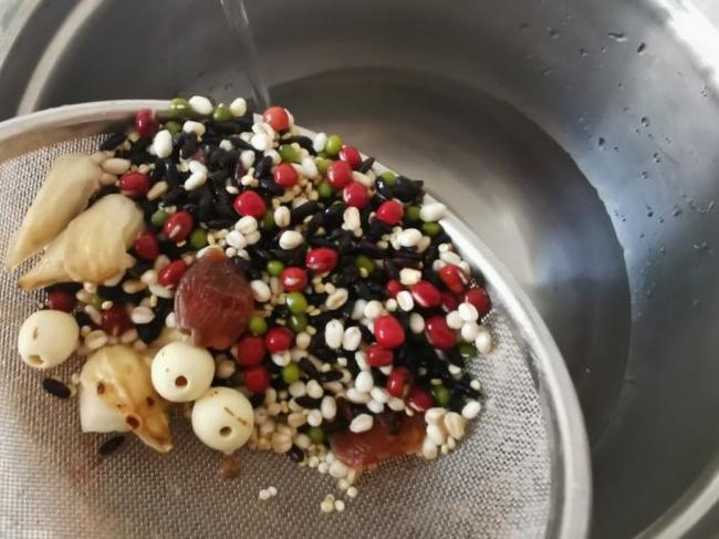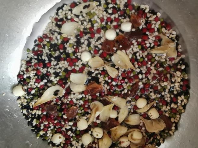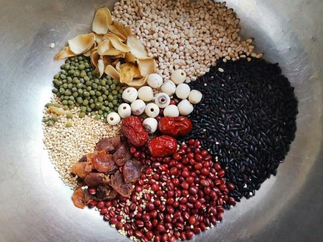所用材料:麦米,藜麦,绿豆,红豆,百合,莲子,红枣,黑米。